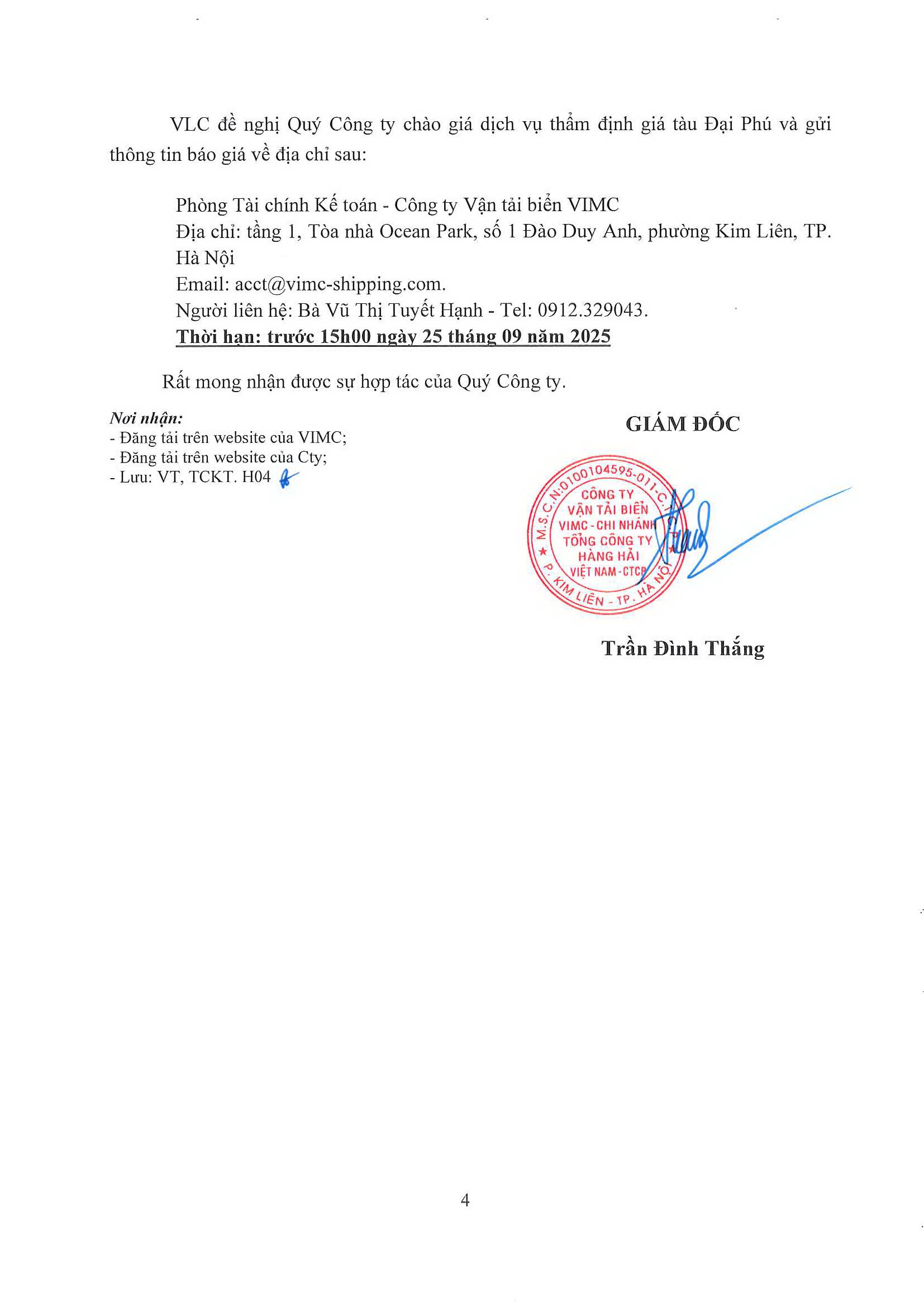 - Yêu cầu báo giá dịch vụ thẩm định giá tàu Tây Sơn 4