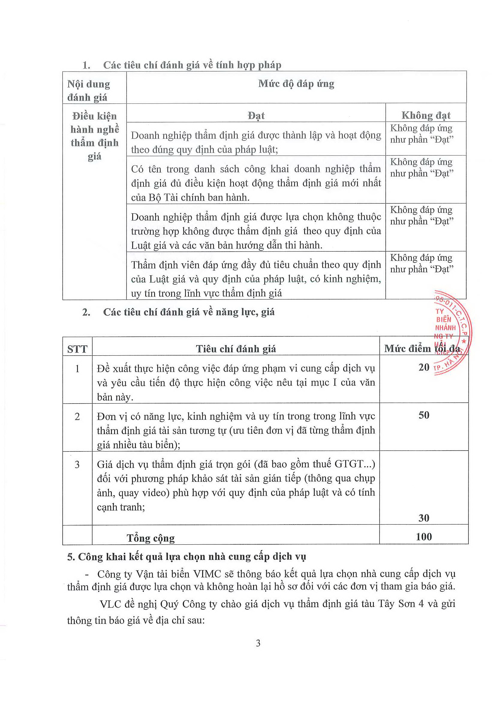 Yêu cầu báo giá dịch vụ thẩm định giá tàu Tây Sơn 4